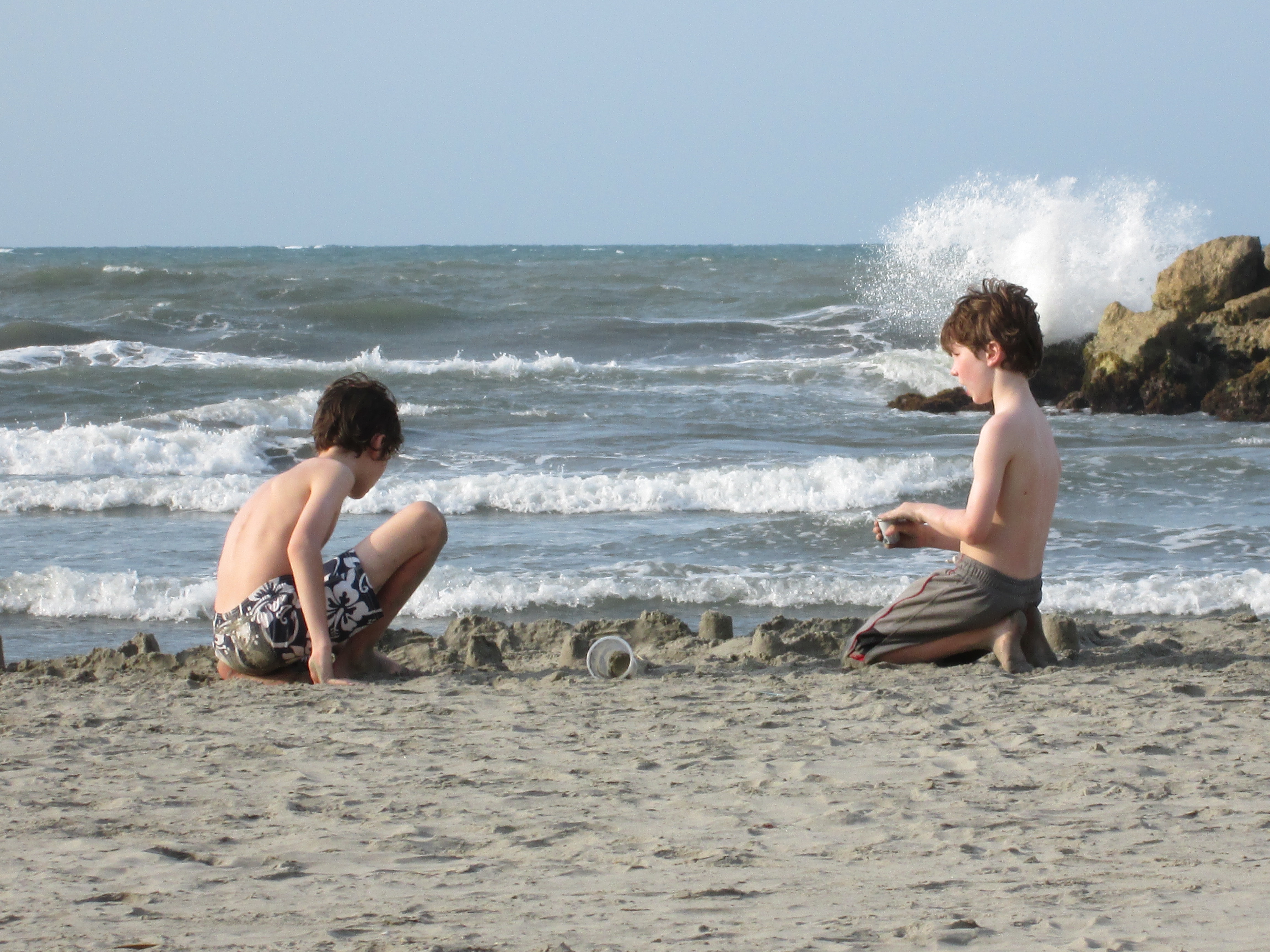 Darin and I surfed the west jetty a few days ago. The water is so very warm here, it makes surfing in Oregon seem like much more work. As Darin surfed and the kids built sand castles, I was repeatedly given sample massages from women walking the beach with buckets of massage oil in small ketchup like bottles. They’d rub it on some body part despite the “no gracias”, convinced that the quality of their oil and skill can’t be refused. It was actually very hard to pass up.