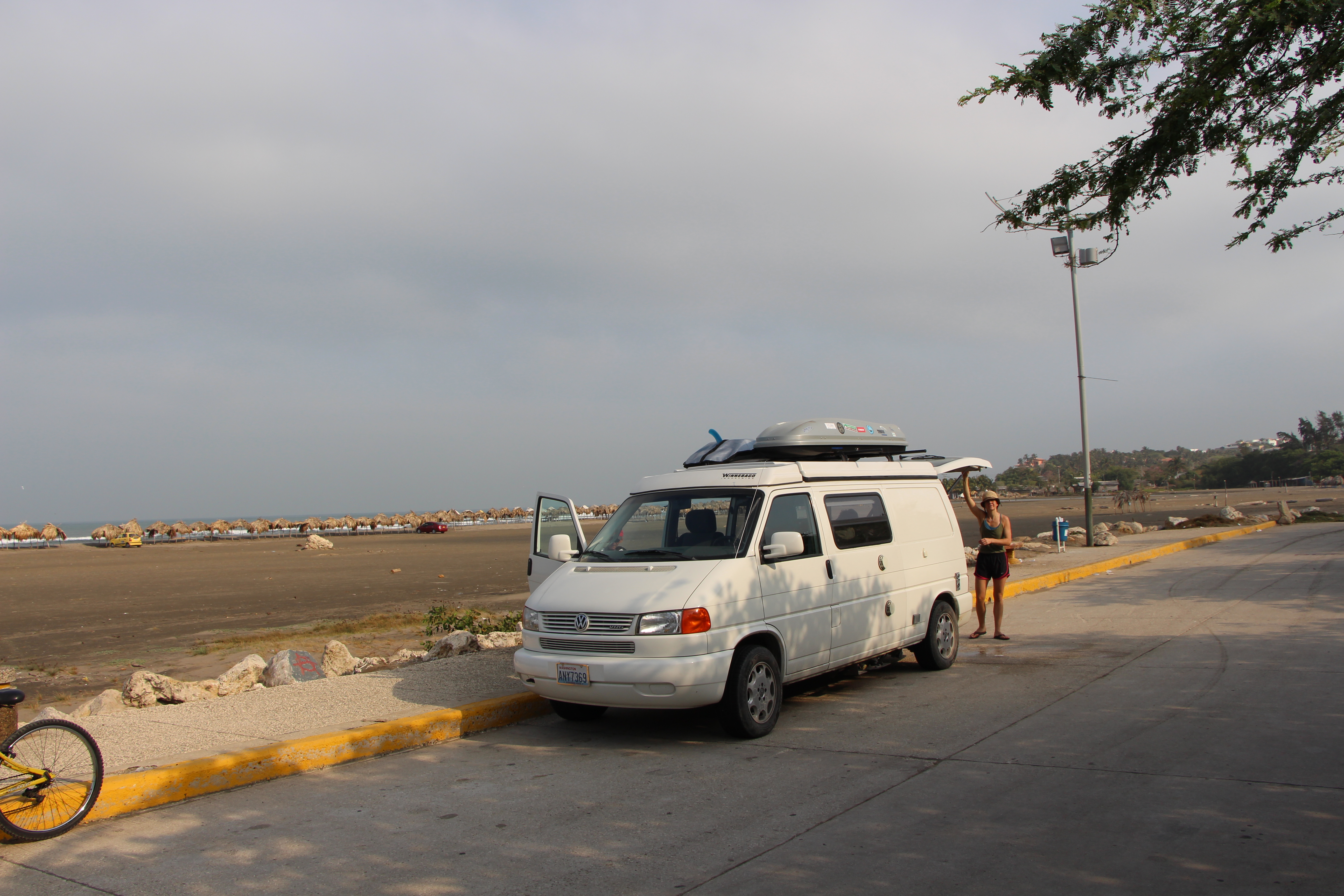 We spent the night of Darin’s 40th birthday by the beach in Puerto Columbia near the Pier. We celebrated with wine (hard to come by here), a delicious homemade dinner, and we ate an entire cake, which the boys and I had purchased in Cartagena, and smuggled in the van so that Darin wouldn’t see it. We were told that the place we’d sparked at was “peligroso”, we moved to a different spot less than a km down the beach set us camp there. Darin and the kids slept in the van and Tierra and I slept in the tent on the beach. Darin got a visit from the local police, curious about our set up and we lay awake most of the night because of the heat and the few Colombians blaring music out of their car parked in front of us until 4am. Unbeknownst to us, this would mark the first of many nights spent awake, wondering how South Americans can party until 5am every weekend.