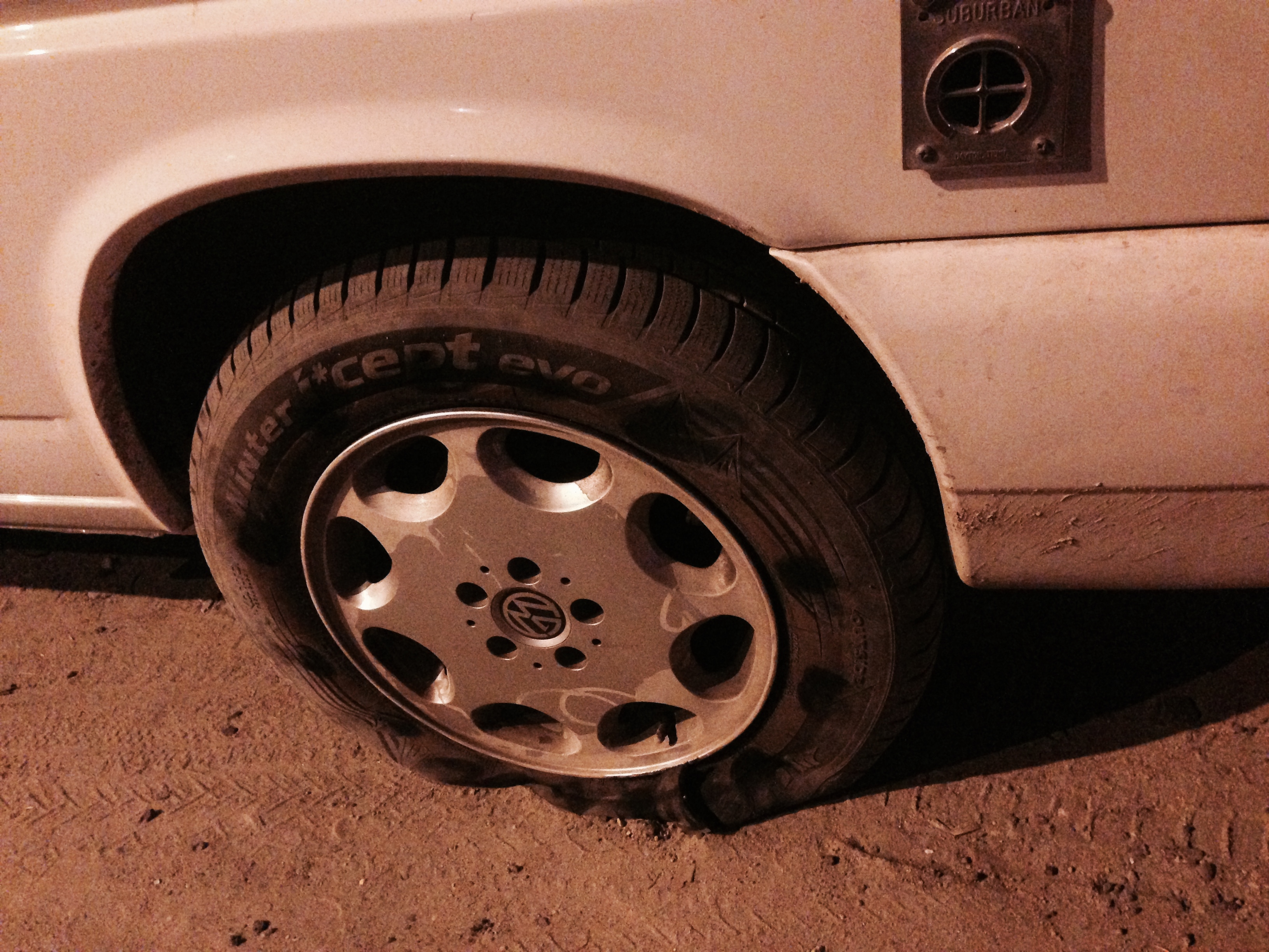 As “van” prepared as I was, the exceptionally high curb in Fundacion shredded my rear driver’s side tire. The van shifted one foot to the right immediately after hitting the curb as it wobbled across the opposite shoulder.