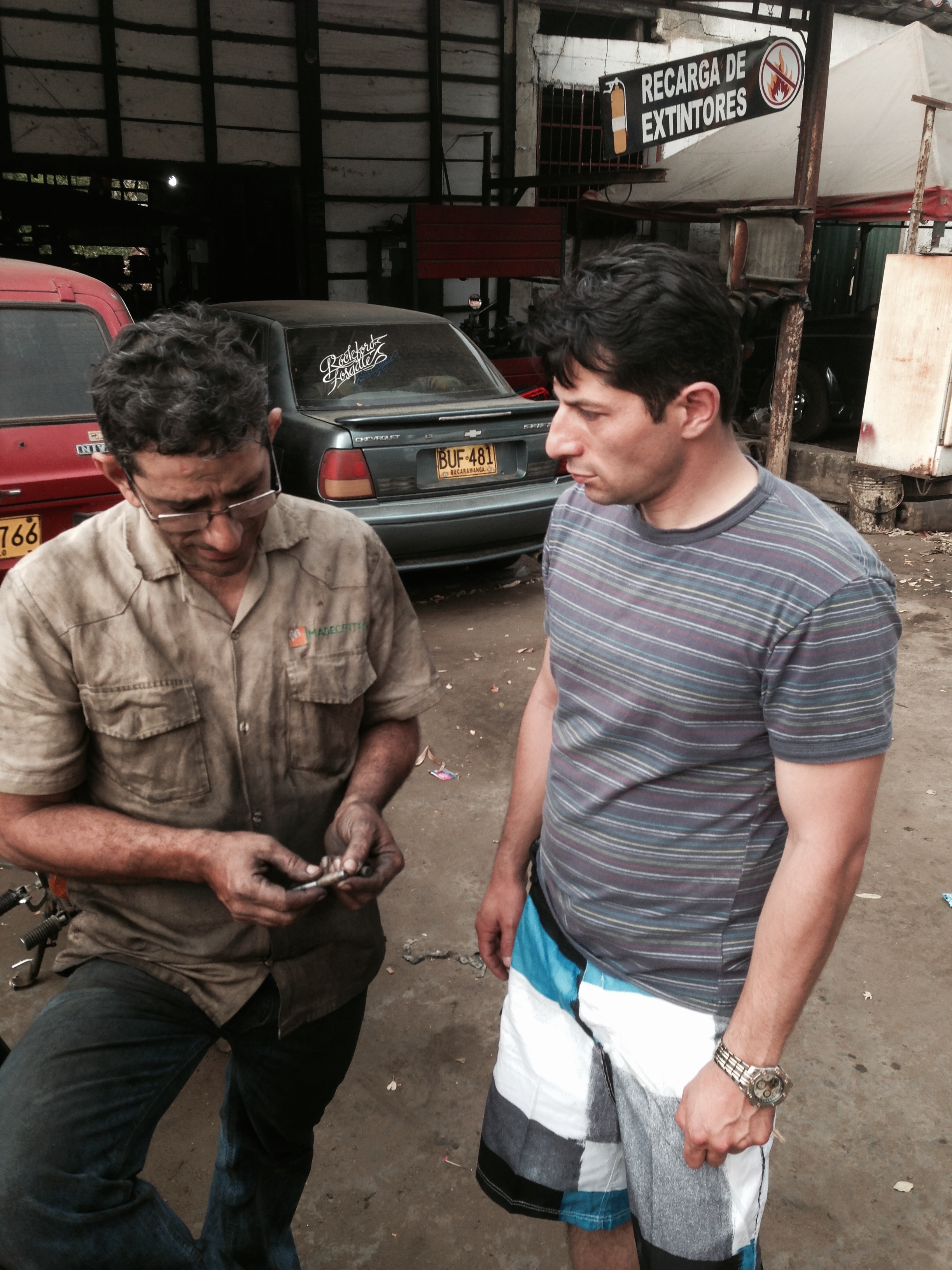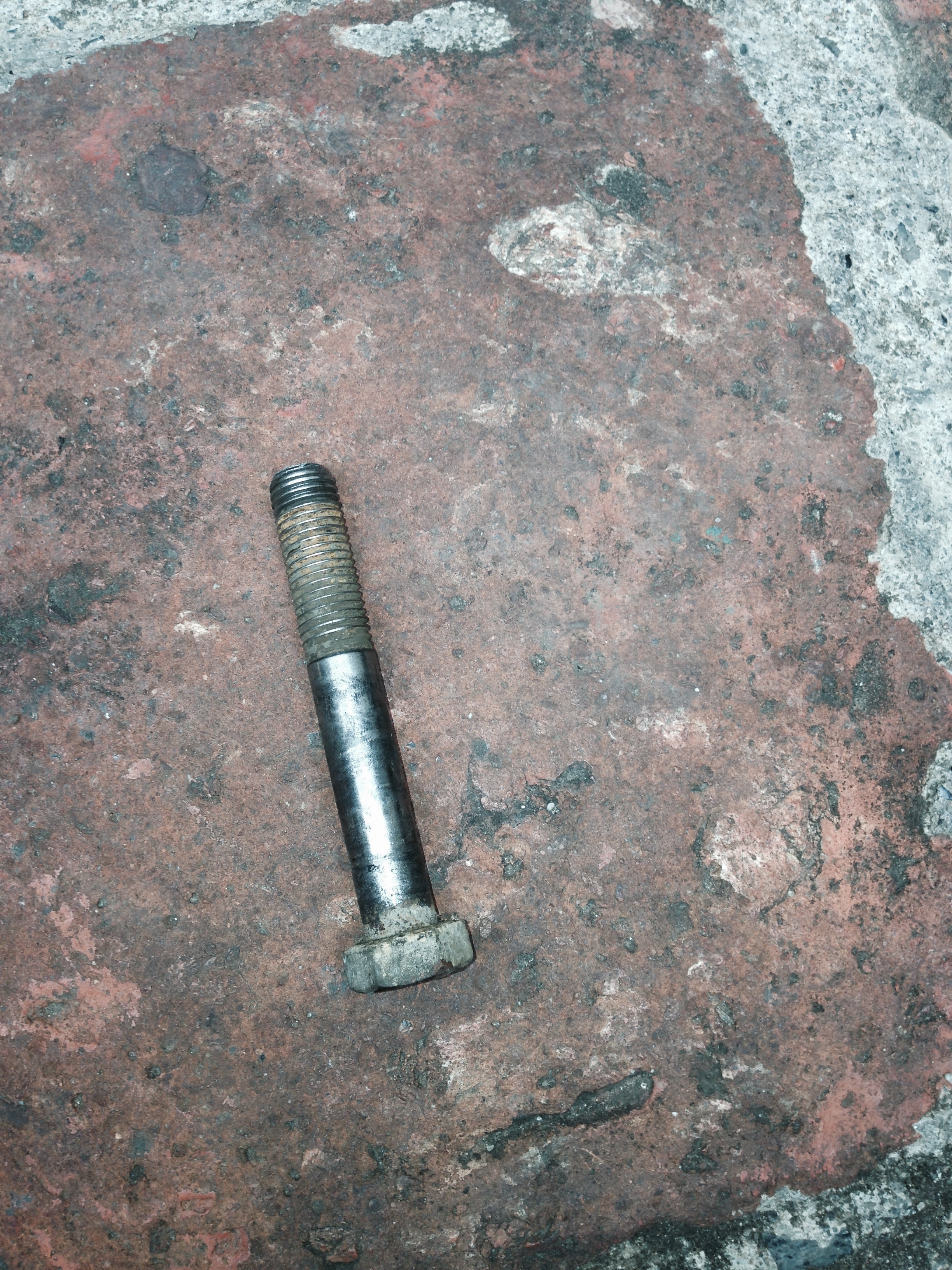 After jacking the back wheel up, I made a friend named Andres, from Bogota. Through limited communication, with the help of Andres’ jack, we were able to align the shock to reinstall the bolt. After numerous failed attempts, I realized the threads were stripped. My amigo drove me all around town to find a replacement bolt, which failed. He took me to a machinist who was able to true the threads on the bolt. One tool I failed to pack was a ratchet and sockets, which sent us to hunt them down. After an hour of traveling around town, the trued bolt was installed in seconds.