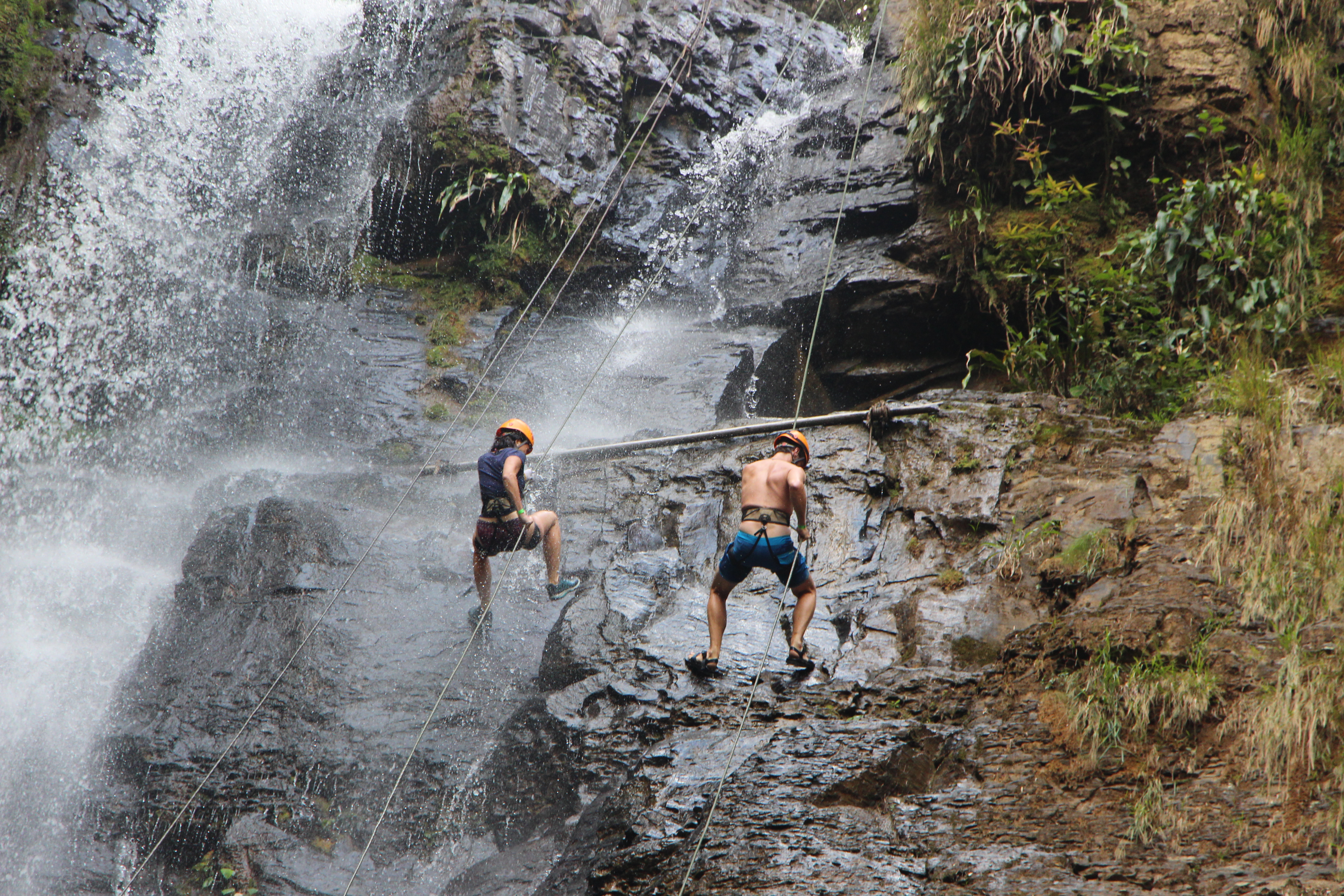 We hiked up to the 180 meter falls, and with the help of two guides, Simon, Darin and I rappelled down a 70 meter part of it. I marveled at Simon’s courage. He was very nervous, saying to me “well mommy, it was nice knowing you” as he leaned back over the sheer cliff of water.